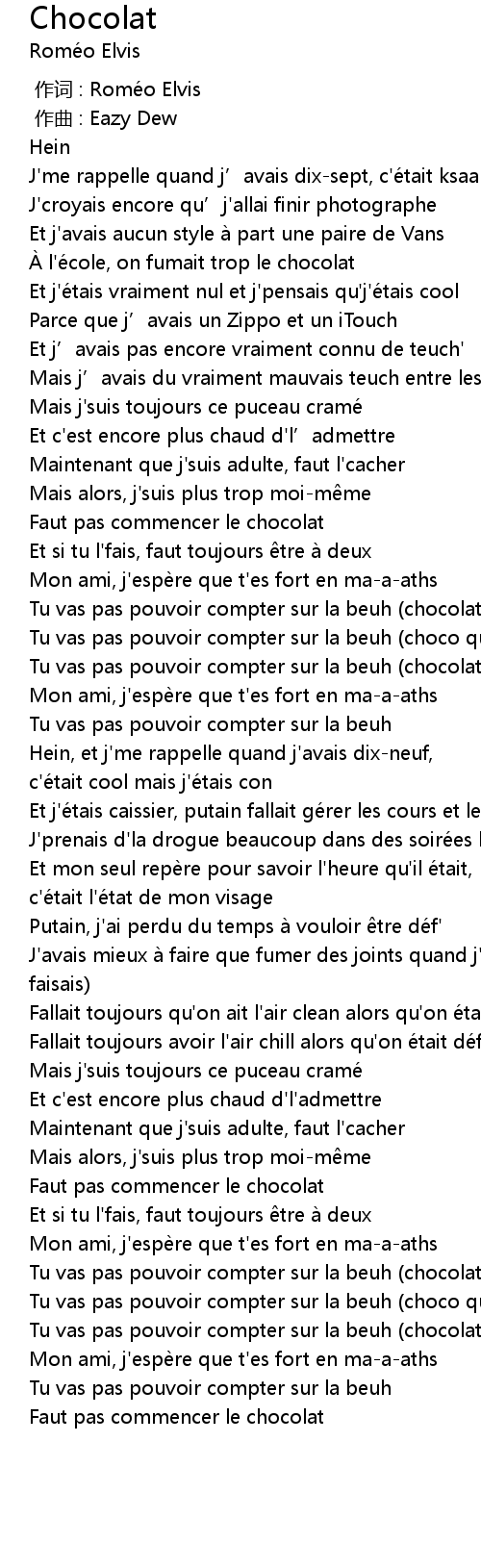 | [02:23.42] | Tu vas pas pouvoir compter sur la beuh (chocolat) |
