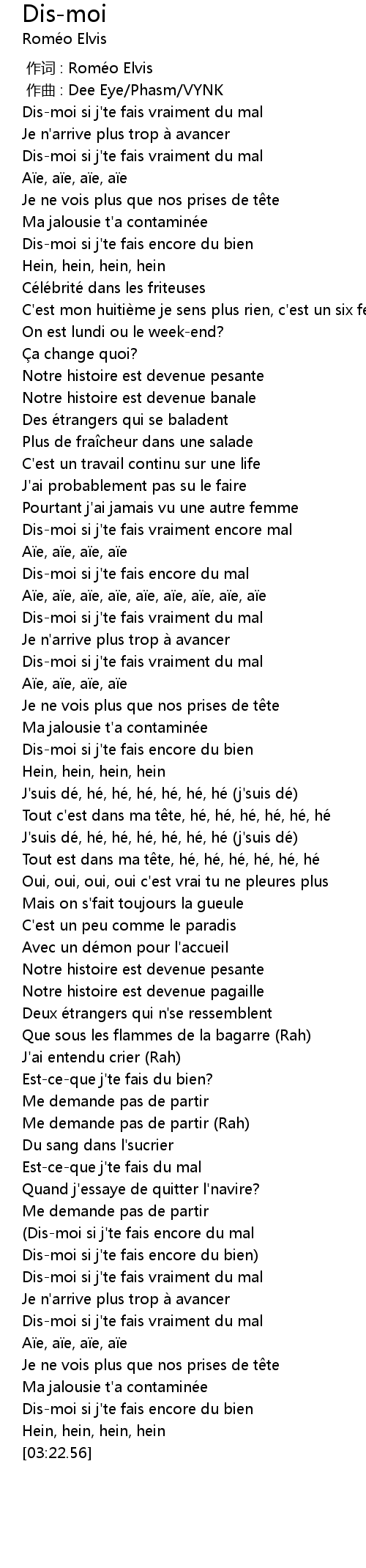 | [02:59.38] | Dis-moi si j'te fais vraiment du mal |