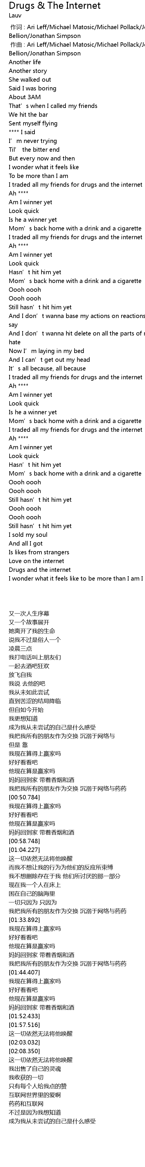 | [00:36.293] | I traded all my friends for drugs and the internet |