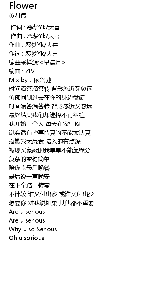 | [00:02.726] | 作词 : 恶梦Yk/大喜 |