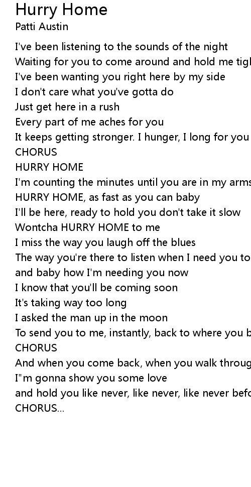 Wontcha HURRY HOME to me |