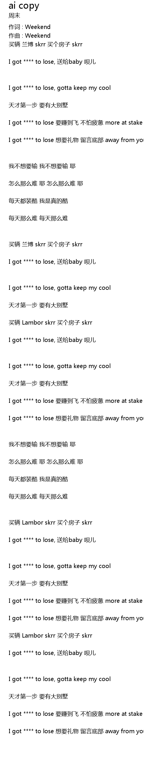 | I got **** to lose 要赚到飞 不怕疲惫 more at stake | |