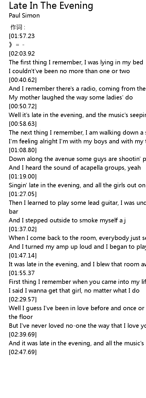 | [03:30.23][01:57.23][00:00.00] | Paul Simon Late In The Evening |