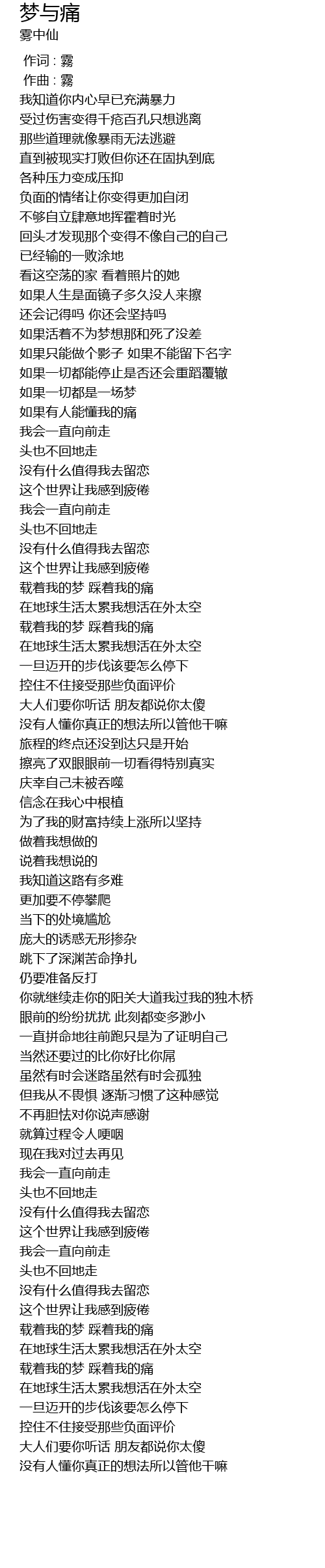 | [03:00.521] | 载着我的梦 踩着我的痛 |
