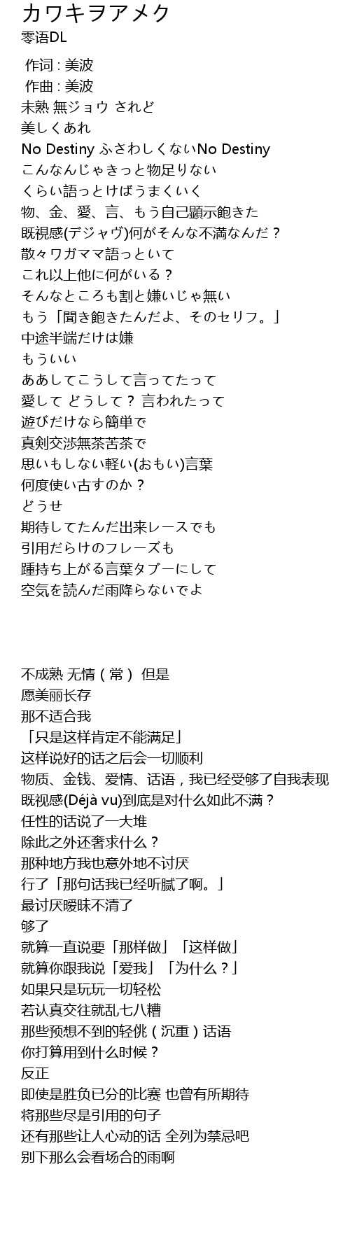 | [00:21.517] | No Destiny ふさわしくないNo Destiny |