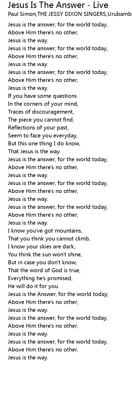Jesus is the answer, for the world today, |