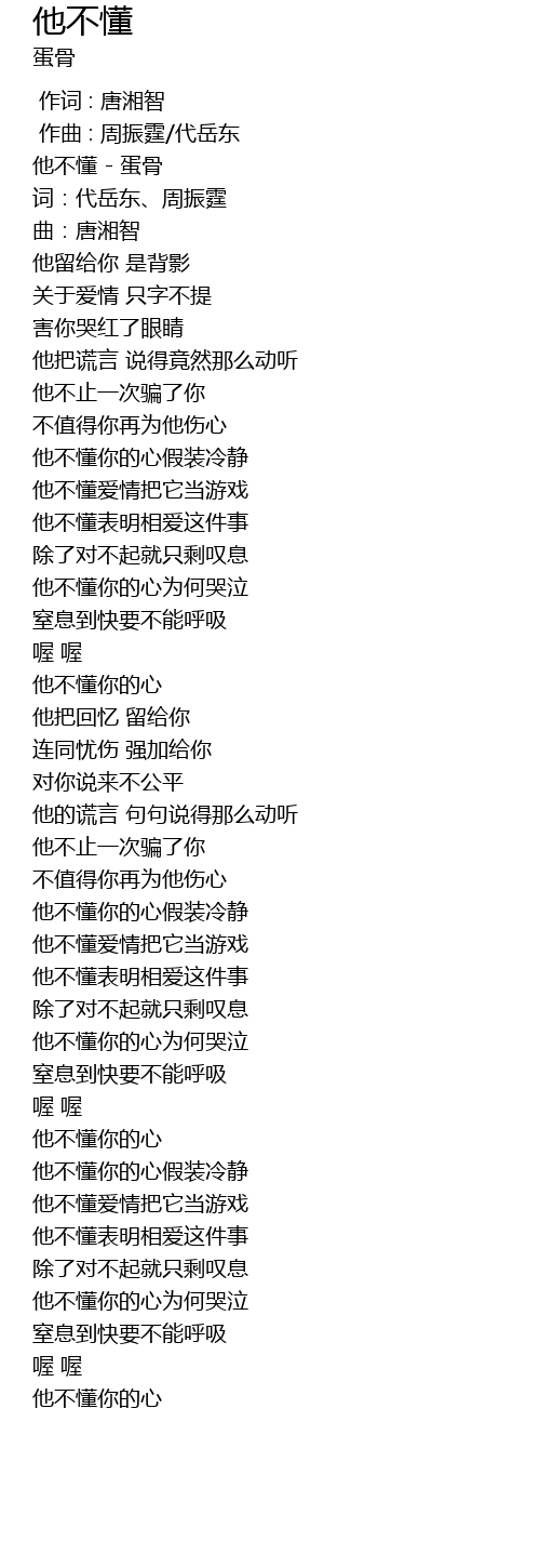 | [00:00.57] | 他不懂 - 蛋骨 |