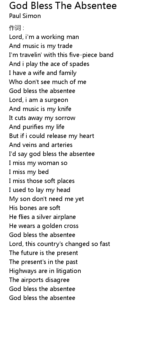 | I' d say god bless the absentee | |