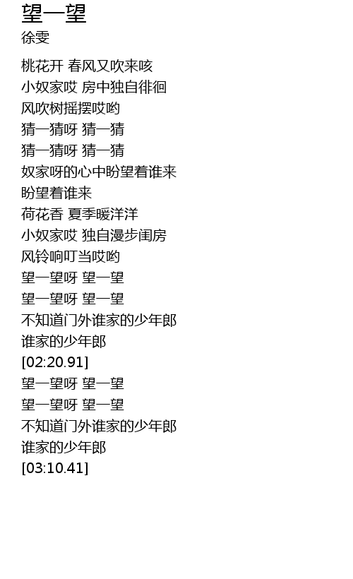| [02:56.34] | 不知道门外谁家的少年郎 |