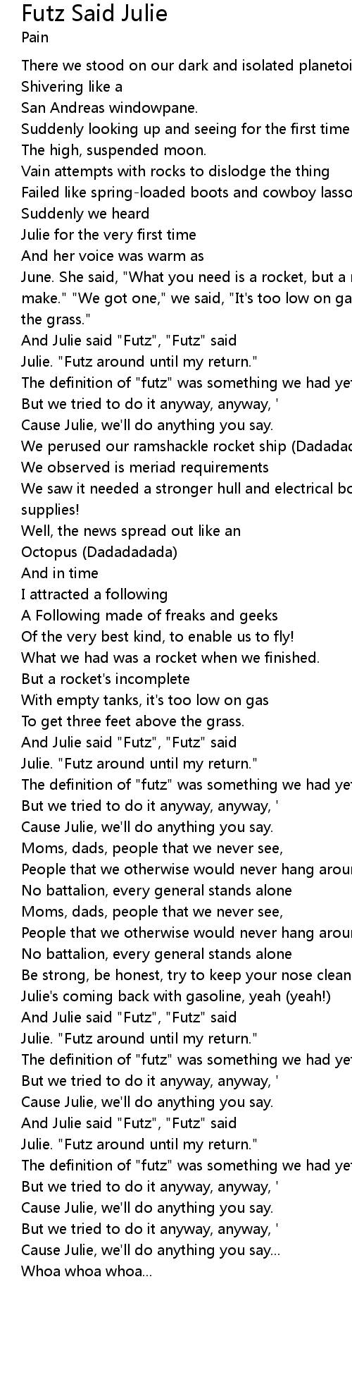 And Julie said "Futz", "Futz" said |