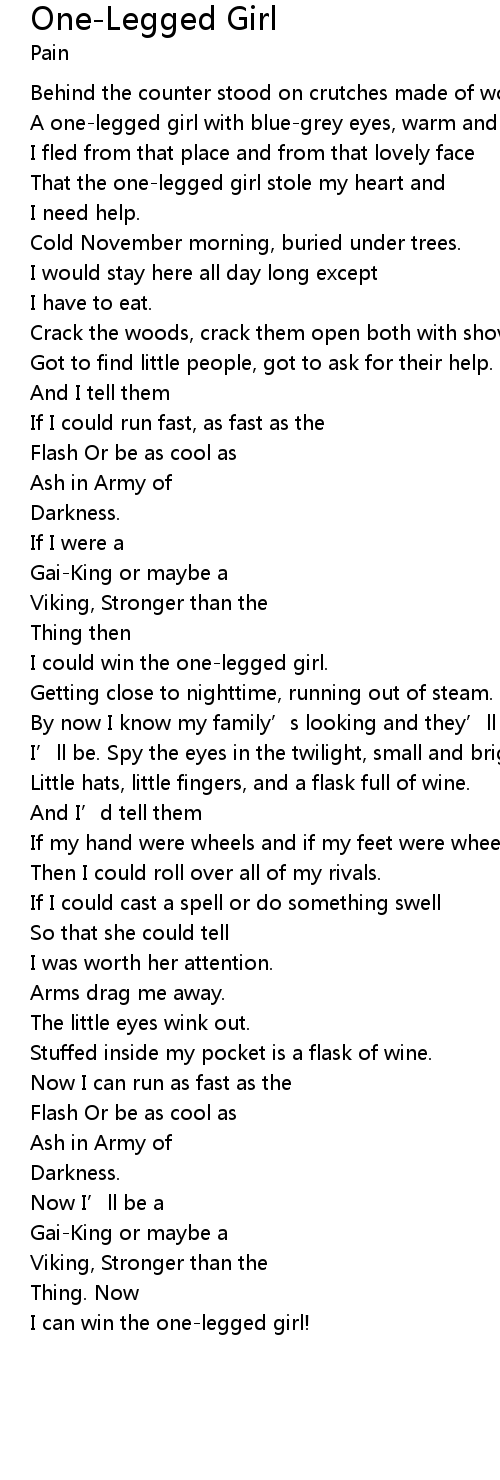 | That the one-legged girl stole my heart and | |