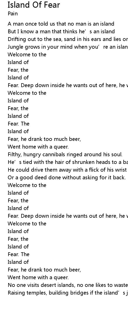 | Fear. Deep down inside he wants out of here, he wants out of here | |