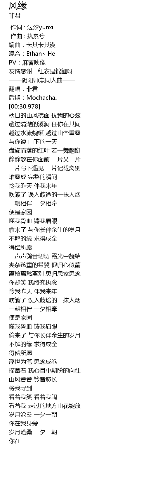 | [00:26.984] | 翻唱:非君 |