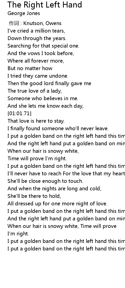 | [01:24.21] | And the right left hand put a golden band on mine. |