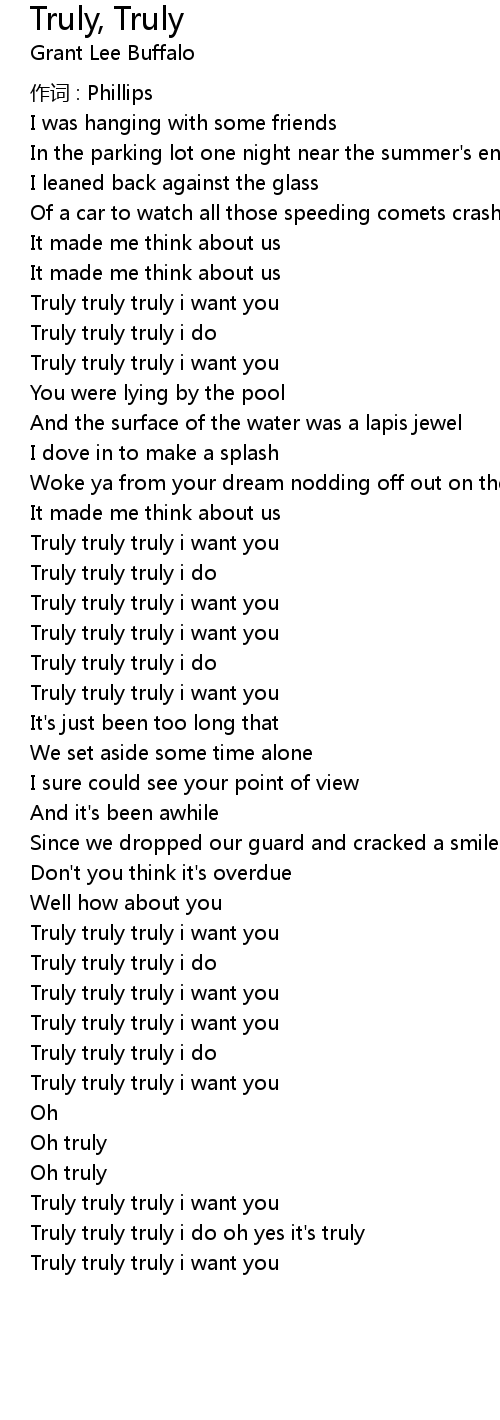 | Truly truly truly i do oh yes it' s truly | |