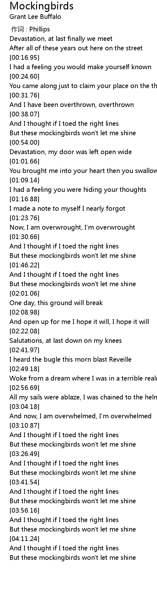 | [04:18.38] | But these mockingbirds won' t let me shine |
