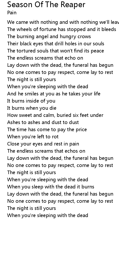 Lay down with the dead, the funeral has begun |