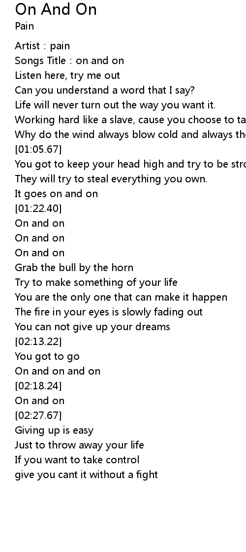 | [02:21.68] | On and on |