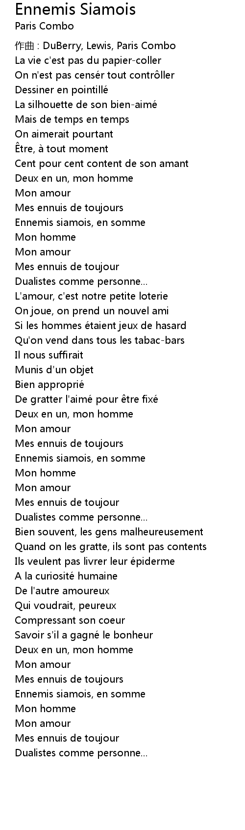 | 作曲 : DuBerry, Lewis, Paris Combo | |