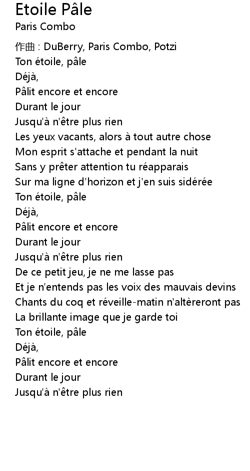 | 作曲 : DuBerry, Paris Combo, Potzi | |