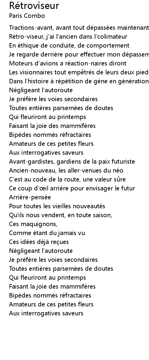 | Re troviseur, j' ai l' ancien dans l' colimateur | |
