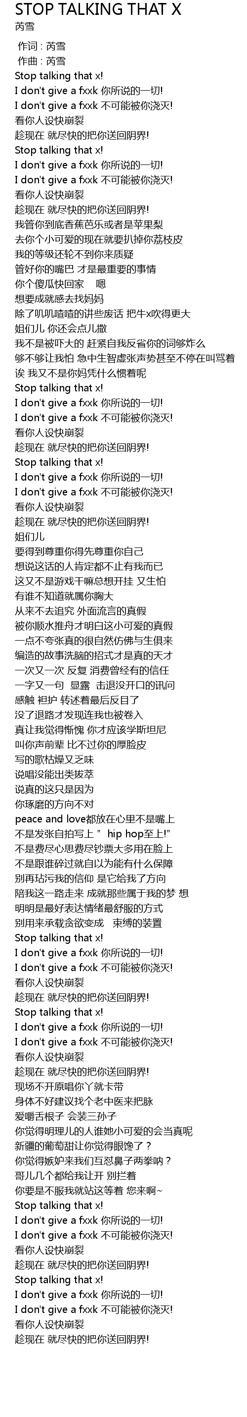 | Song | STOP TALKING THAT X |