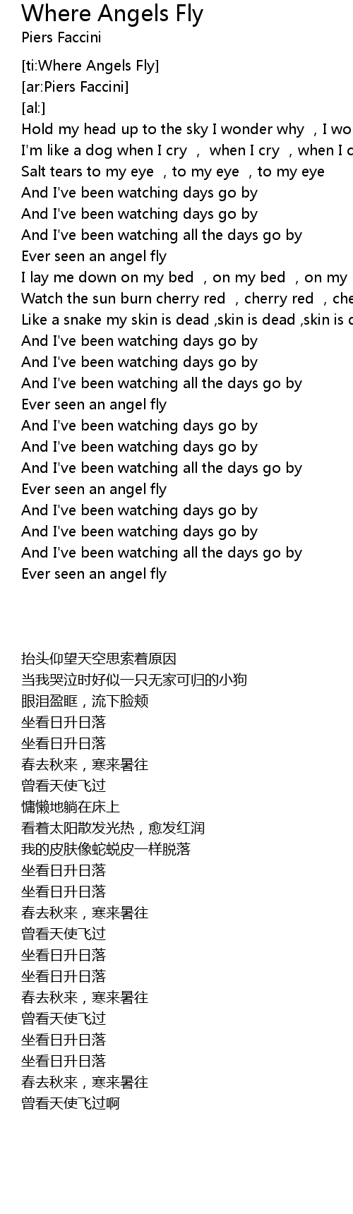 | [00:42.28] | Hold my head up to the sky I wonder why ,I wonder why |