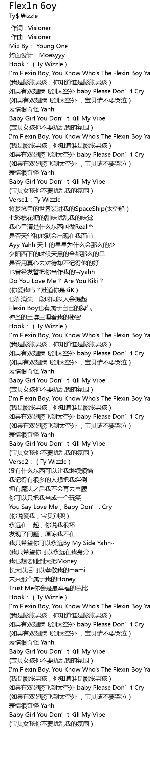 | [02:03.294] | I' m Flexin Boy, You Know Who' s The Flexin Boy Yahh |