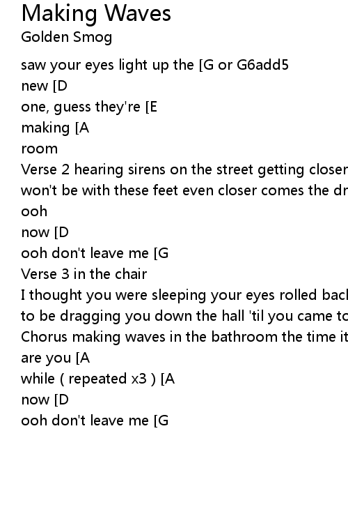 Chorus making waves in the bathroom the time it saves, it's the last room [D]ooh don't leave me [G]now [D]ooh don't leave me [E]now [D]ooh don't leave me [G]now [D]ooh don't leave me [G]now |
