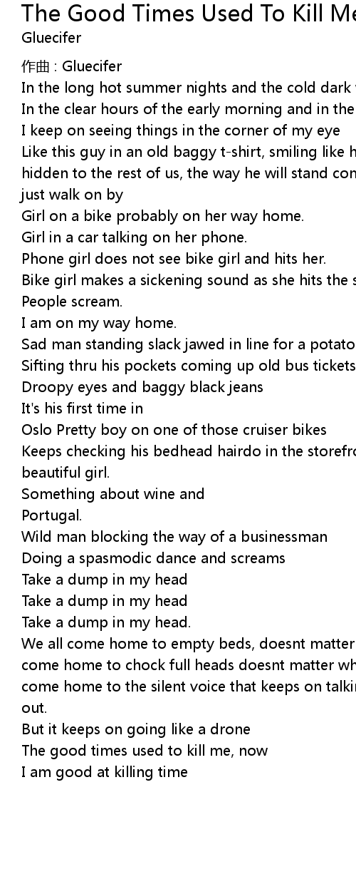 | The good times used to kill me, now | |