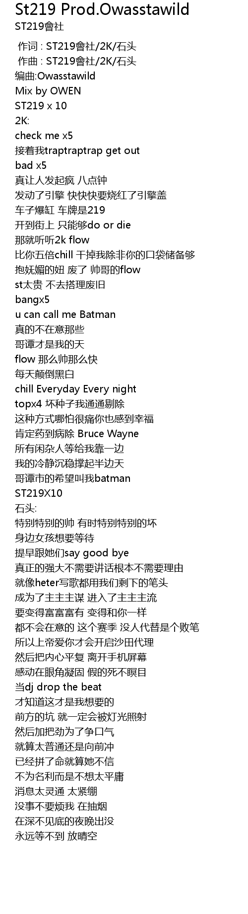 | [00:01.000] | zuo qu : ST219 hui she 2K shi tou |