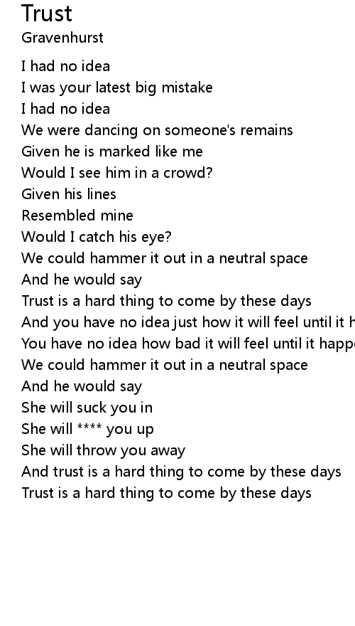 Trust is a hard thing to come by these days |