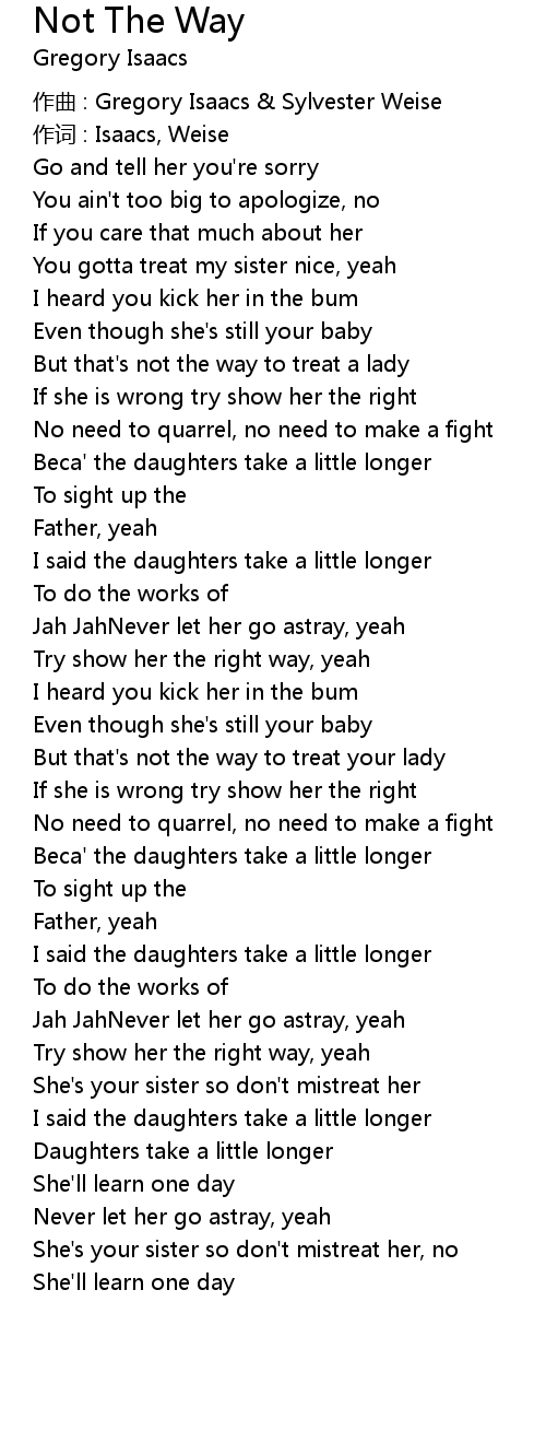 | Try show her the right way, yeah | |