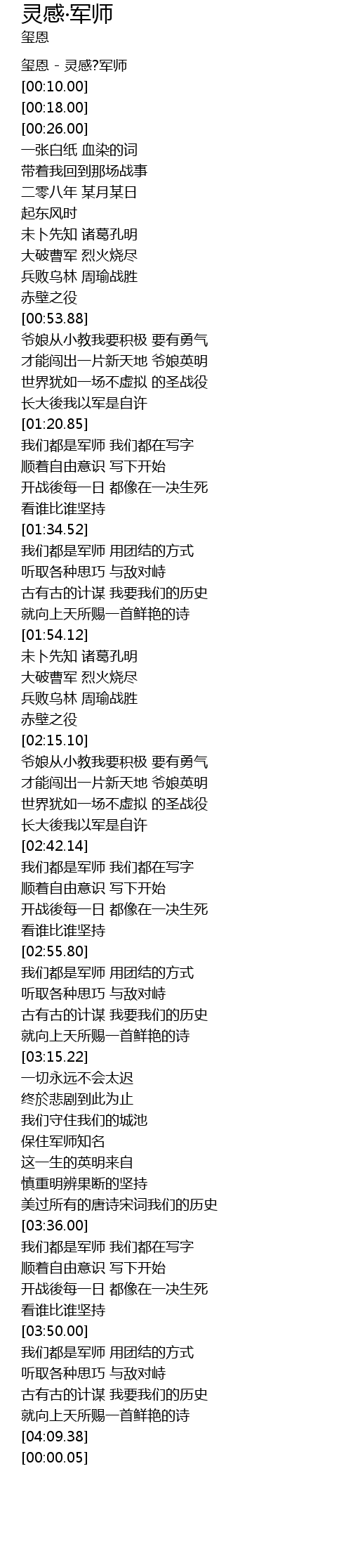 | [00:02.00] | 玺恩 - 灵感?军师 |