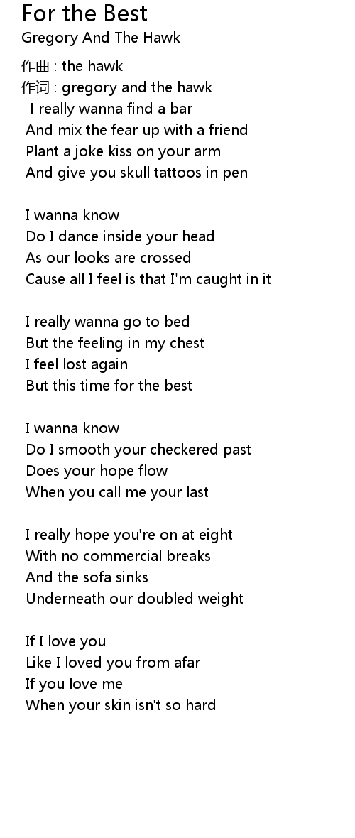 | 作词 : gregory and the hawk | |
