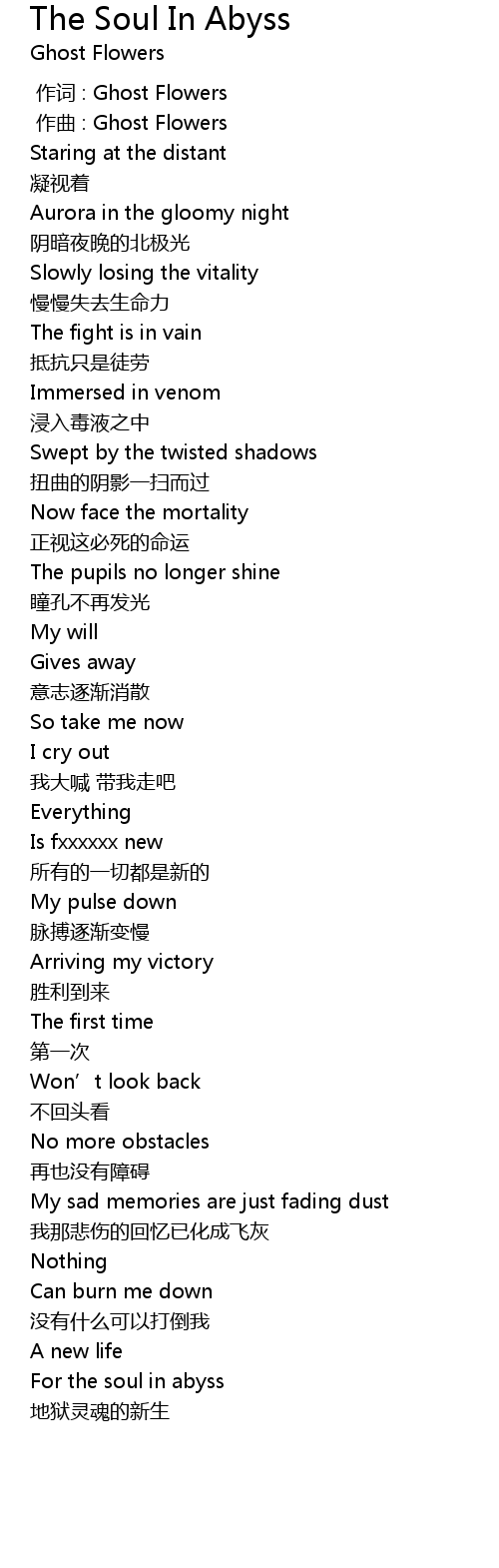 | [03:00.461] | For the soul in abyss |