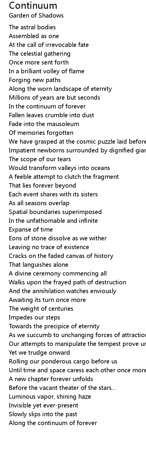 Until time and space caress each other once more |