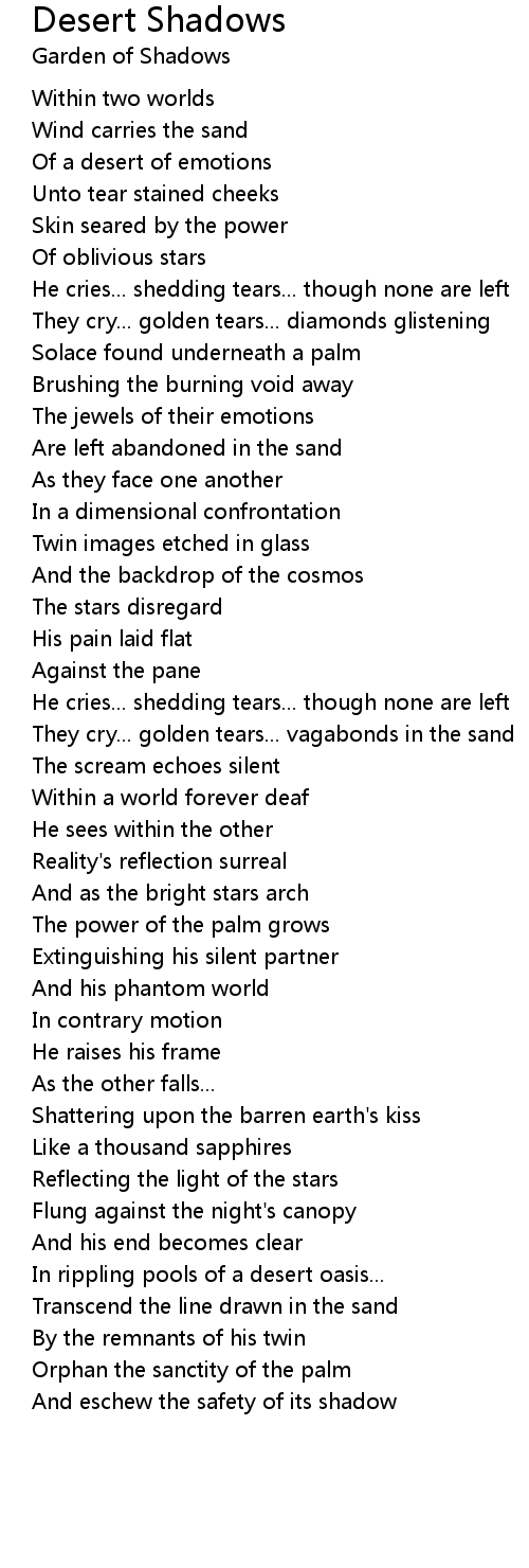 They cry... golden tears... vagabonds in the sand |