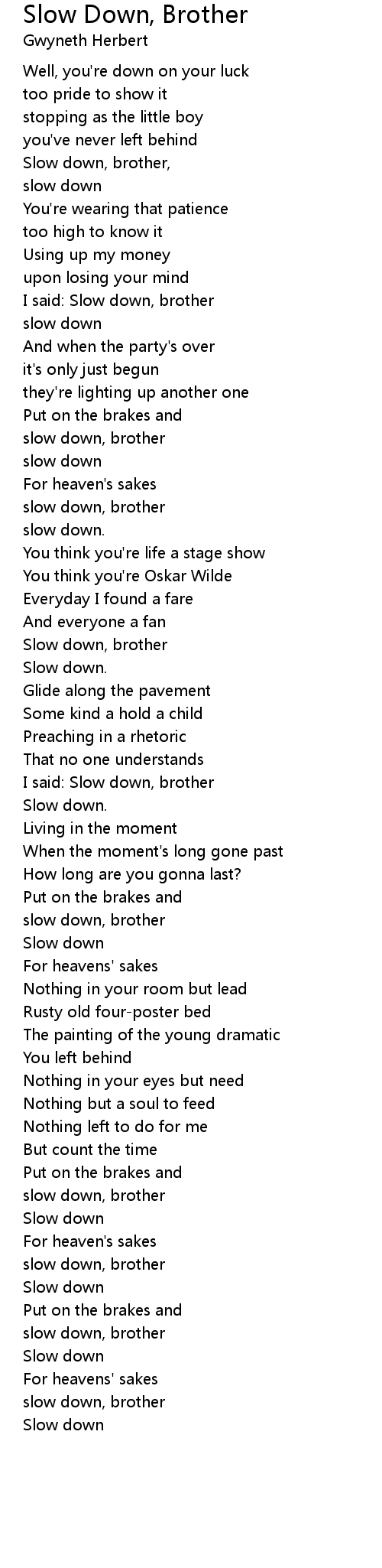 Slow down, brother, |