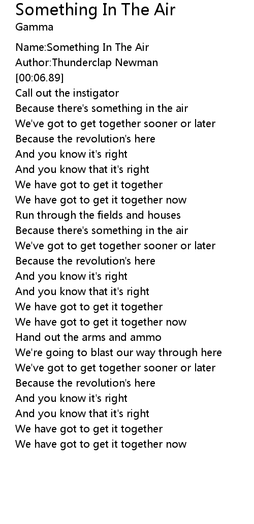 | [00:16.04] | Because there's something in the air |