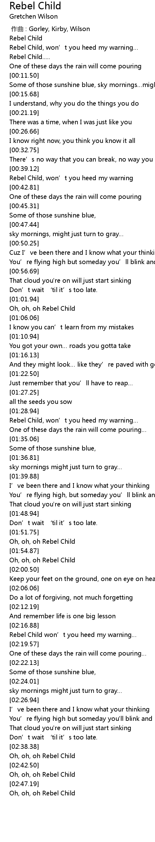 | [02:45.01] | Oh, oh, oh Rebel Child |