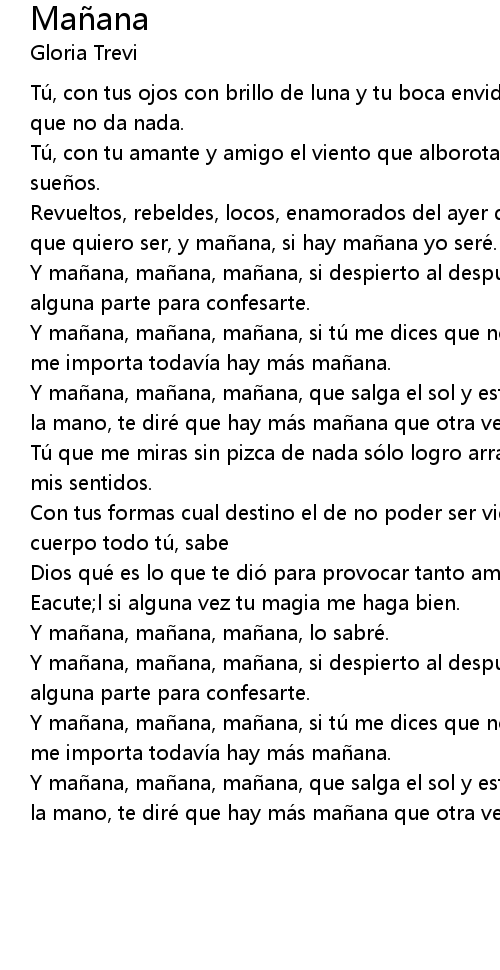 | Y mañana, mañana, mañana, si tú me dices que no sientes nada te diré que no me importa todavía hay más mañana. | |