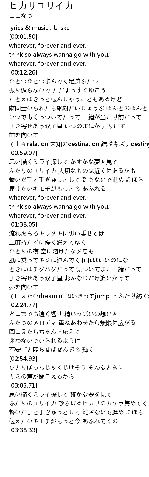 | [03:13.00] | ふたりのユリイカ 散らばるヒカリのカケラ集めてく |