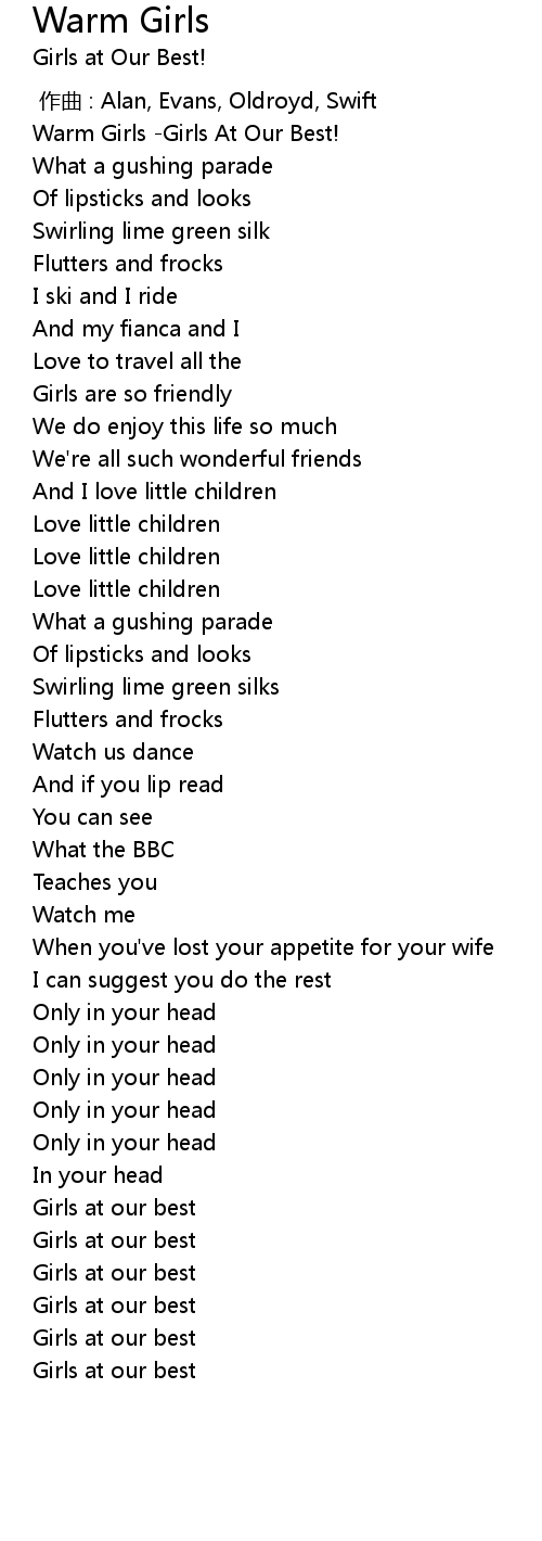 | [00:00.362] | Warm Girls -Girls At Our Best! |