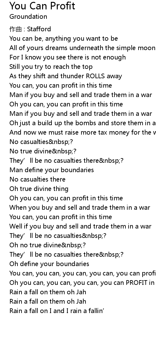 | You can, you can, you can, you can, you can profit | |