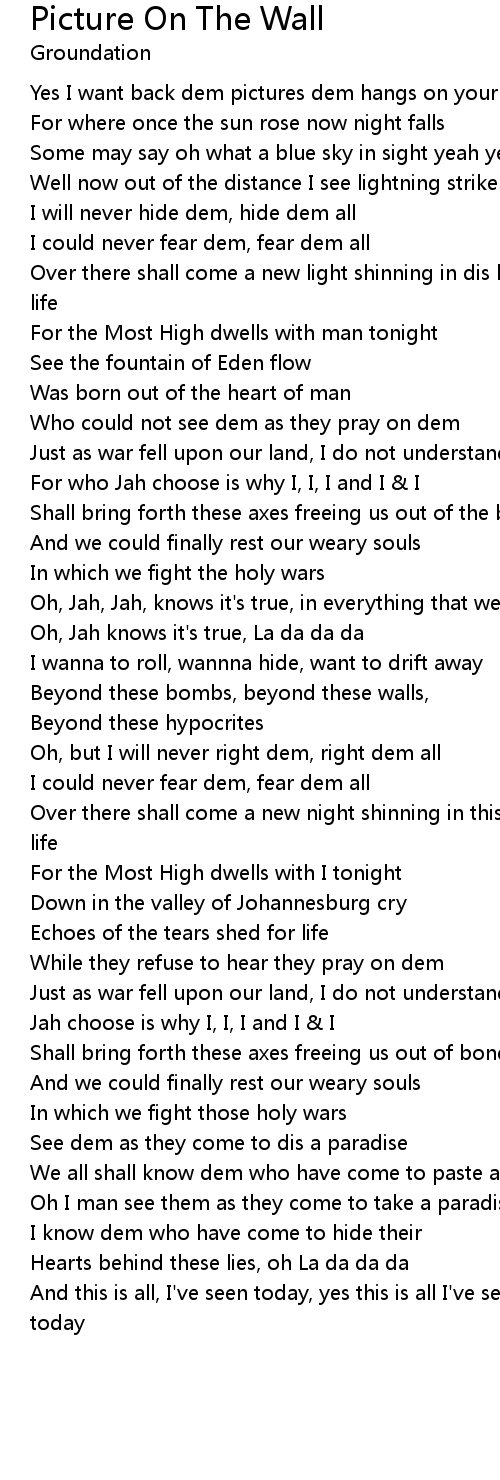 Yes I want back dem pictures dem hangs on your wall |