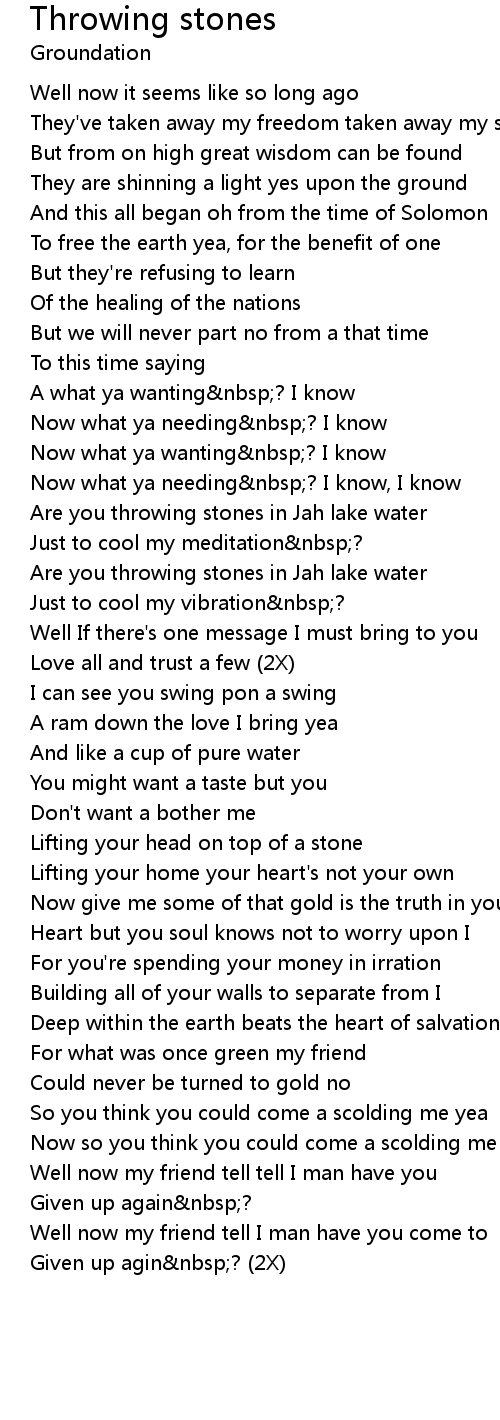 Are you throwing stones in Jah lake water |