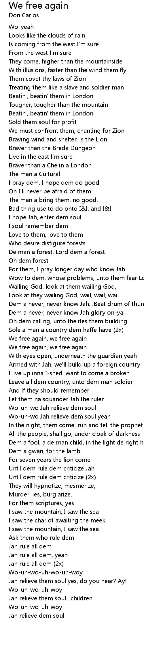 | Wo-uh-wo Jah relieve dem soul yeah | |