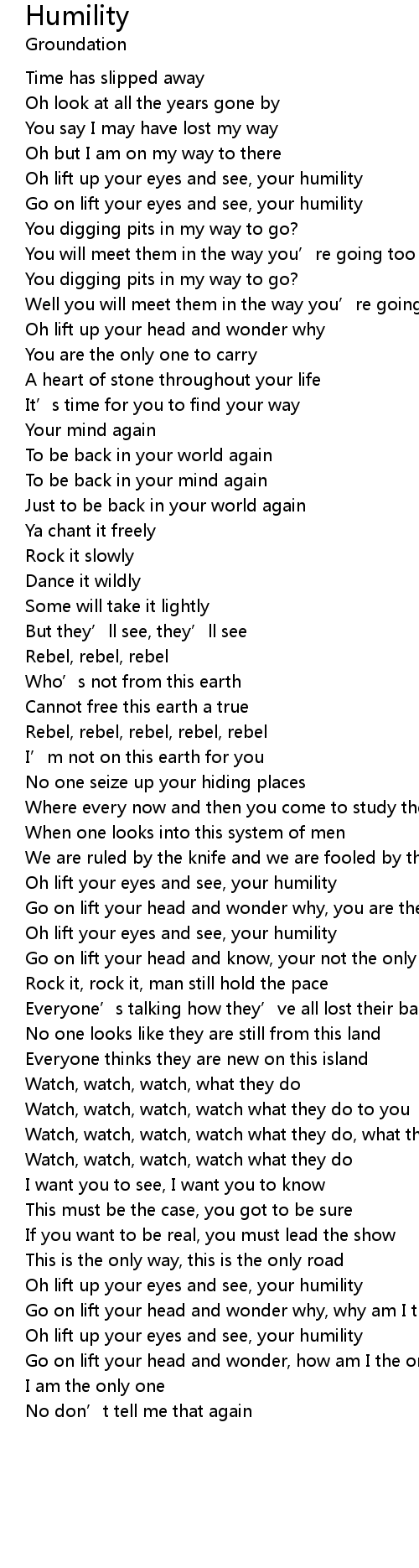 | Go on lift your eyes and see, your humility | |
