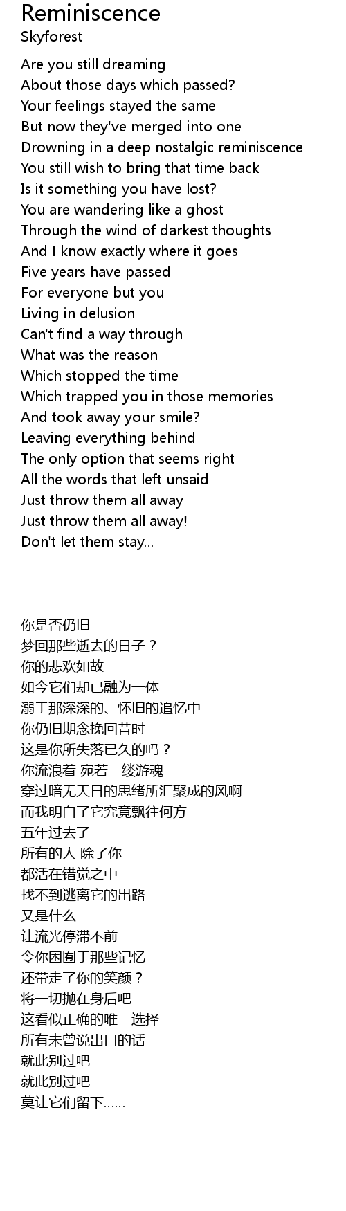 | [02:34.05] | Drowning in a deep nostalgic reminiscence |